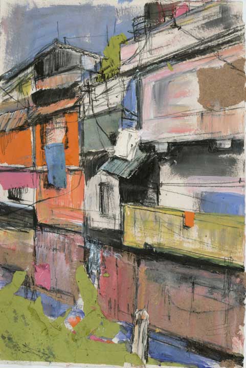 Meine Arbeiten sind durch ihre unmittelbare Entstehungsweise im Freien, auf Reisen, in fremder Umgebung, unter Einbezug von Materialien aus der Umgebung, einmalig. Ich beende sie nach Möglichkeit vor Ort, so kann ich die Stimmung, das Licht, die Situation und Intensität festhalten und sie durchdringen meine Bilder. In meinen Werken spielt der Mensch oft eine untergeordnete Rolle, eher ist er für mich ein Statist, der kommt und geht, bzw. taucht häufig eine Figur als mein Alter Ego auf. Ich versuche das Besondere oder Typische zu erspüren, einzutauchen oder Träume zu formulieren und mit meiner Kunst auszudrücken.