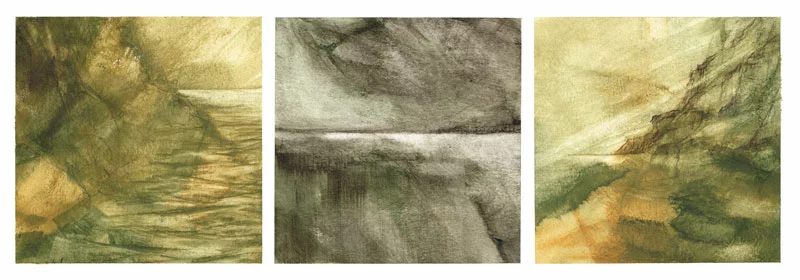 Kerstin-Mempel, Landschaft 5 (Küste), 4 (grau), 3 (Berg), Erdpigmente, je 30 x 30 cm